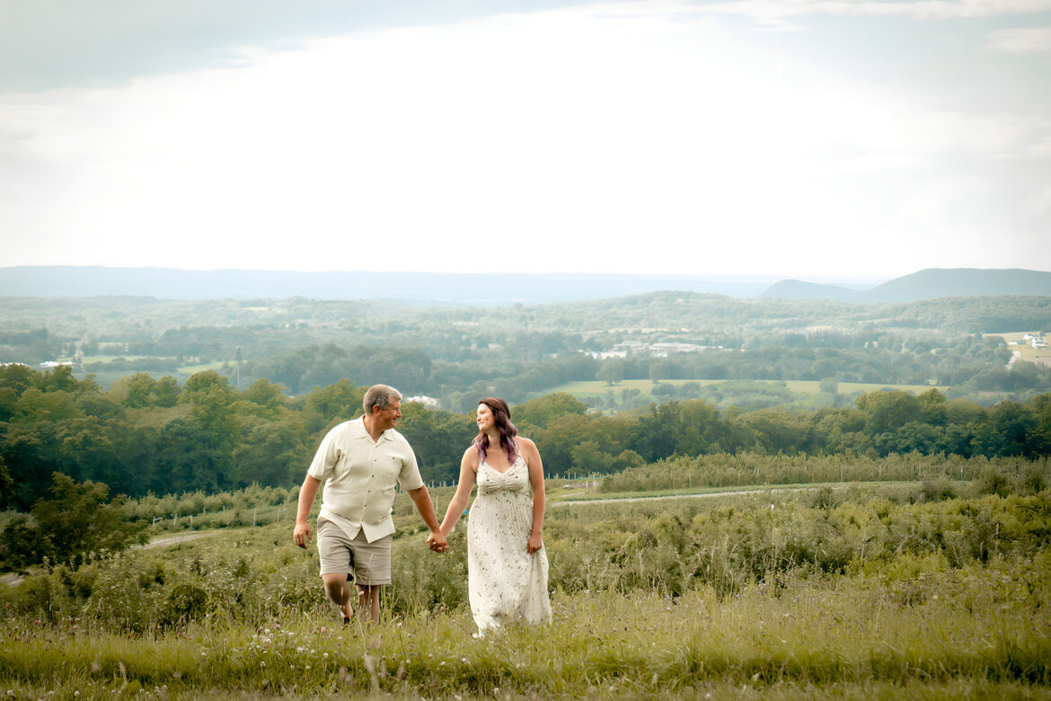 Amanda and Carl are local to Warwick NY and when she reached out for engagement photos, she mentioned that she wanted a view of the mountains and valley. LUCKILY I knew just the spot. Ochs Orchard in Warwick NY has a beautiful spot at the top of their property that is perfect for rolling mountain views and plenty of foliage. Congratulations to Amanda + Carl!